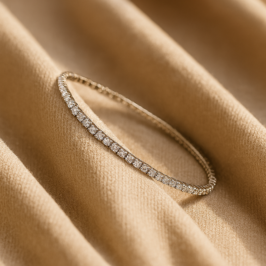 Elevate your everyday elegance with the Eterna Silver Tennis Bracelet. Crafted from certified 925 sterling silver, this ultra-slim bracelet features a dazzling line of 3 cent (2mm) round-cut stones — each one meticulously set to maximize brilliance and comfort. Whether you're heading to brunch or an evening event, its minimal yet radiant design complements every outfit with effortless grace.